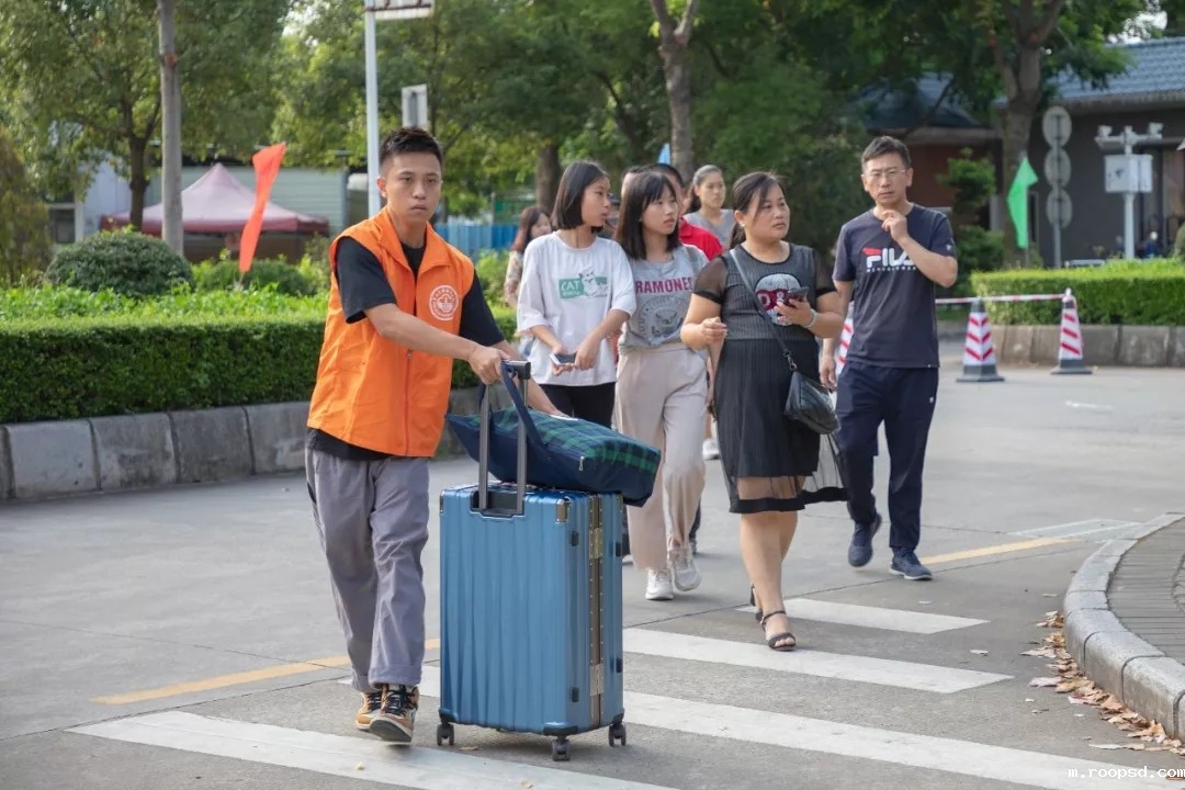 每当接站车辆抵达校园,志愿者们就立即来到道路边,引导车流、秩序井然地帮助新生和家长搬运行李,指引报到、贴心解答……得到了家长的认可。