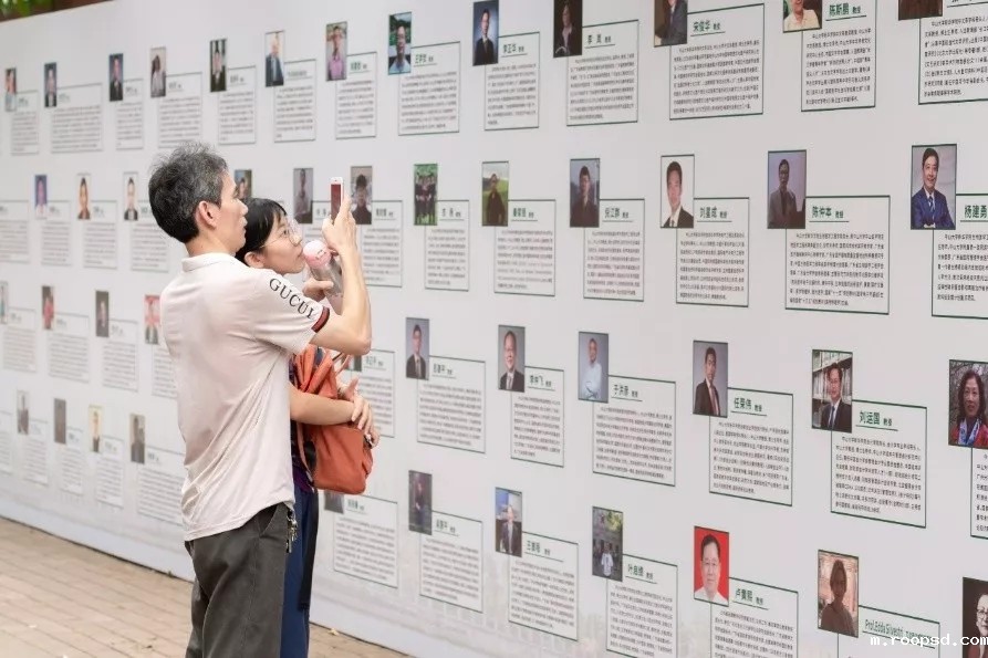 新生家长在学者风采展板前驻足