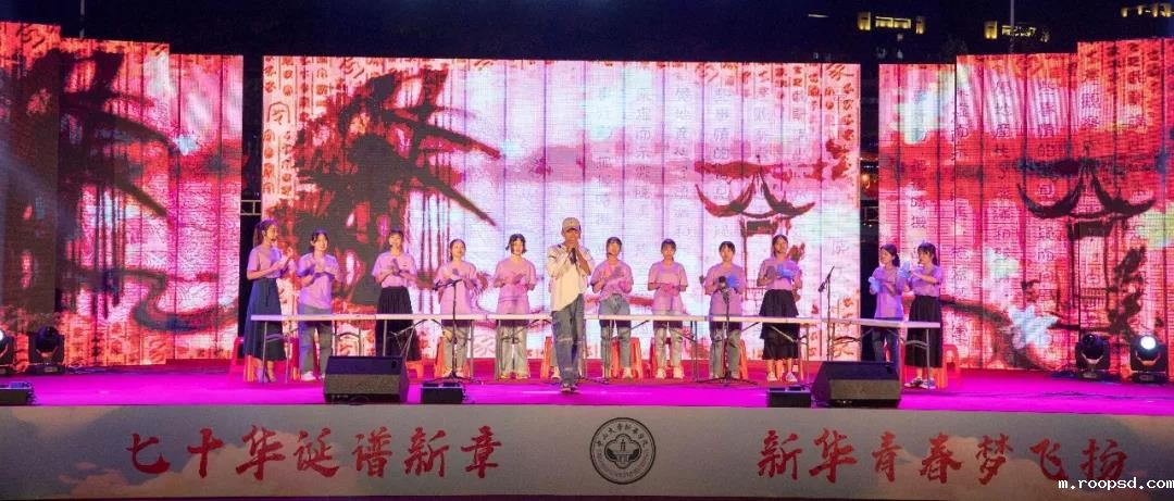 同一时间,跨越校区。穗莞两校区迎新晚会表演精彩纷呈,给现场全体观众带来了一场视觉、听觉盛宴。舞台上闪耀的灯光、舞台下闪动的荧光棒,使得现场气氛青春激昂,全场观众激情澎湃。演员们通过表演彰显热血青春,为新生开启大学精彩生活新篇章,为庆祝中华人民共和国成立七十周年增添光彩。