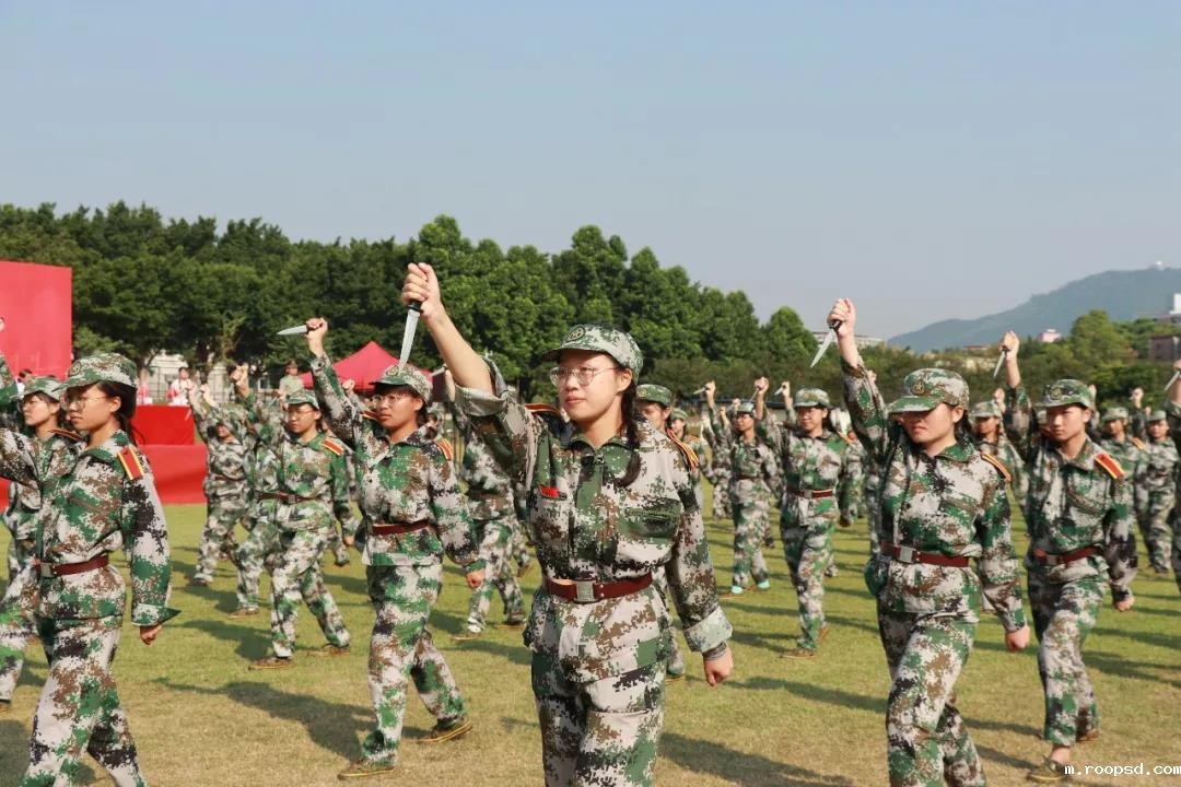 2019级参训新生汇报表演了分列式表演、军体拳、擒敌拳、匕首操、刺杀操、反恐战术、手语操、花样队列操等各项军训项目成果。他们嘹亮的口号、挺拔的身姿、矫健的步伐,尽显十四天的军事训练成果,也展现了中大bv伟德体育app官网学子的蓬勃朝气,赢得现场领导、老师的阵阵掌声。