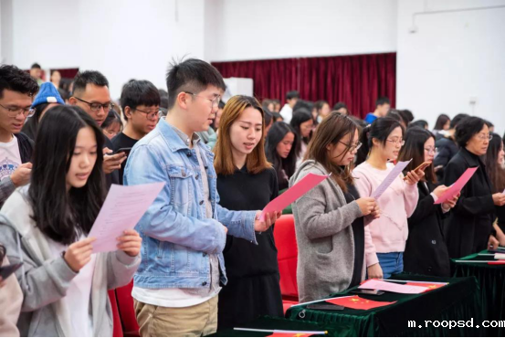 “我宣誓:忠于中华人民共和国宪法,维护宪法权威,履行法定职责……为建设富强、民主、文明、和谐、美丽的社会主义现代化强国努力奋斗!”在李岚教授的领誓下,全体师生举起右手握拳,一起面向宪法和国旗庄严宣誓。