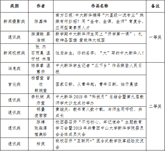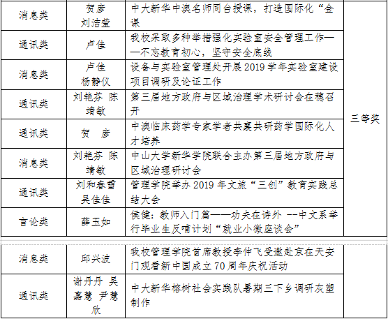 学院2019年度新闻宣传先进单位、优秀新媒体、好新闻作品的通知》(中新党宣〔2019〕21号)和《关于评选中山大学