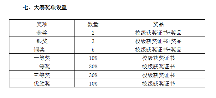 2.参赛组织:各个学院以小组为单位进行报名,参赛队伍数量不限。每队由若干指导老师(1-2人)和若干学生组成(2-5人)。在决赛环节,每支参赛队伍可派出不超过5人的团队。
