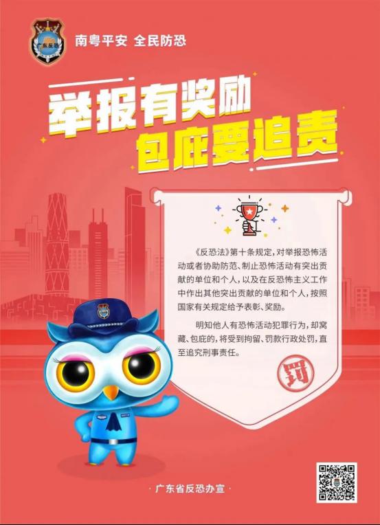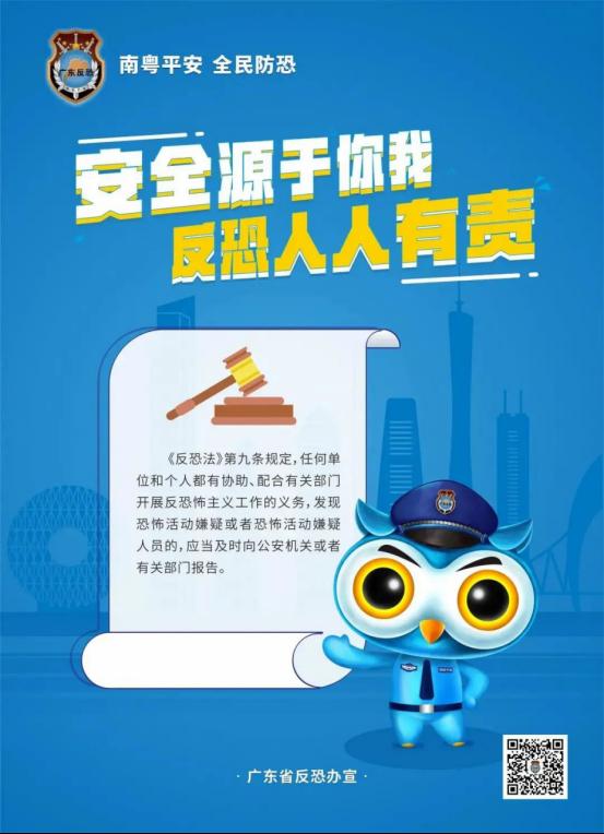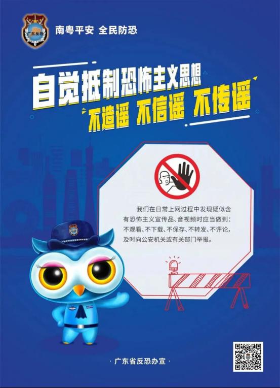 12月27日,是《反恐怖主义法》颁布五周年,根据广东省教育厅关于开展“反恐怖宣传教育进校园”暨《反恐怖主义法>颁布五周年系列宣传教育活动的通知》要求,为进一步加强《反恐怖主义法》宣传普及,提高我校师生反恐防恐意识和应对自救能力、配合反恐怖主义工作,请校内各单位组织本单位学生通过关注“广东反恐”微信公众号,积极参与系列宣传活动,进行反恐知识有奖问答,学习反恐法律知识和防范应对技能。