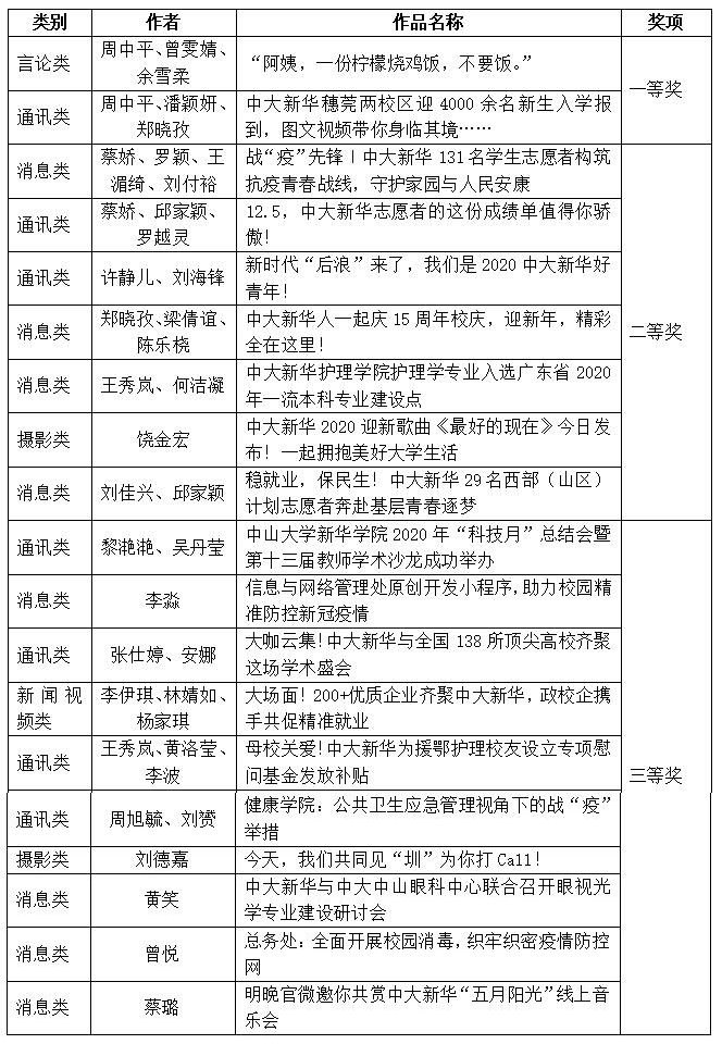 学院2020年度新闻宣传先进单位、优秀新媒体、好新闻作品的通知》(中新党宣〔2020〕21号)和《关于评选中山大学