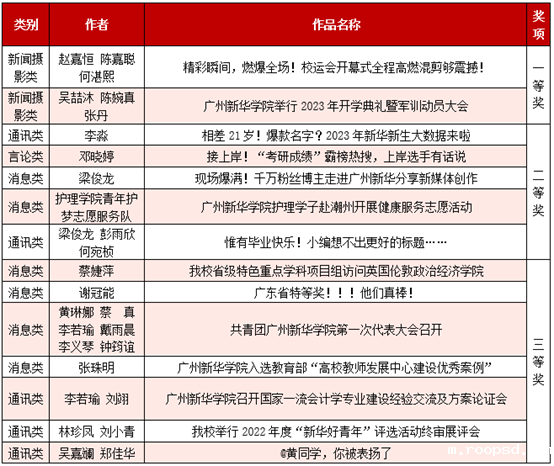 近日,依据《关于开展伟德app入口2023年宣传思想工作评优表彰的通知》(广新党宣发〔2023〕15号),党委宣传部(新闻中心)本着公平公开公正的原则,在校内各单位、师生个人自愿申报的基础上,组织评委专家评选出5个新闻宣传先进单位、10个优秀新媒体、6位十佳通讯员、14位十佳记者、14篇好新闻作品。现将评选结果公示如下: