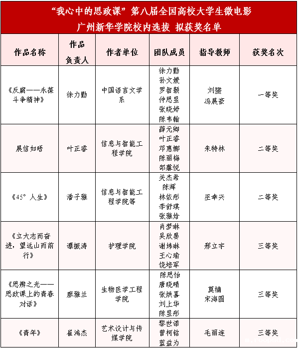 2024年10月,学校党委在全校师生中开展“习近平新时代中国特色社会主义思想大学习领航计划主题教育活动”,具体包括第八届全国高校“大学生讲思政课”公开课和“我心中的思政课”微电影等两项展示活动作品征集。近日,党委宣传部(新闻中心)本着公平公开公正的原则,组织评委专家分别评选出思政公开课和微电影一、二、三等奖共12部作品,现将名单公示如下: