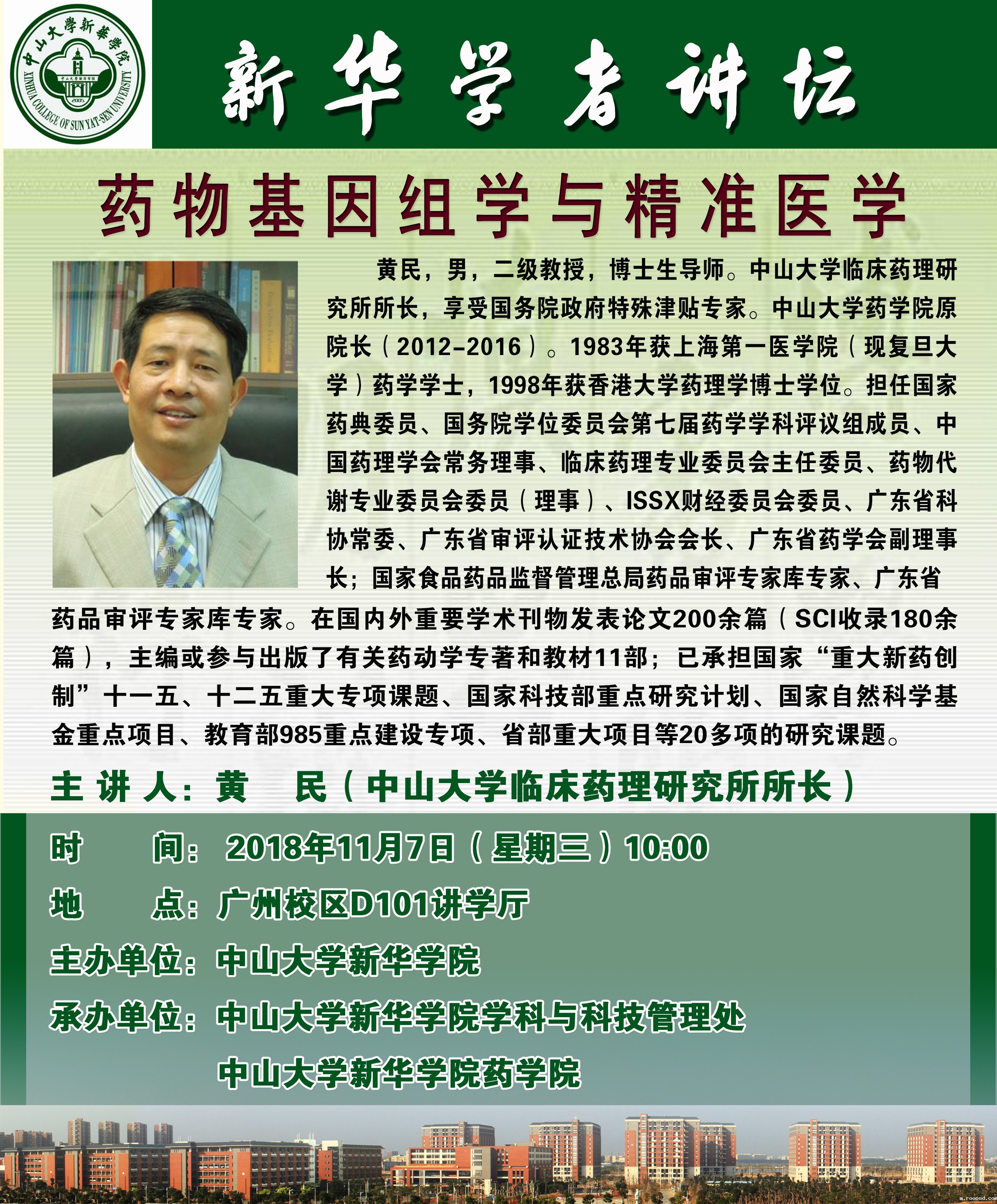 主 讲 人:黄民 中山大学临床药理研究所所长