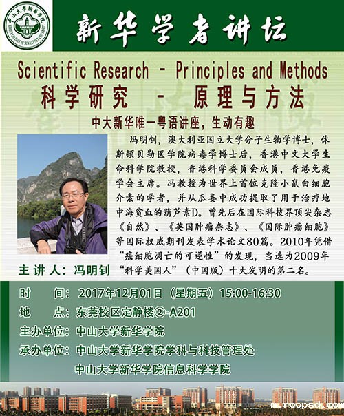 讲座主题:Scientific Research – Principles and Methods科学研究–原理与方法