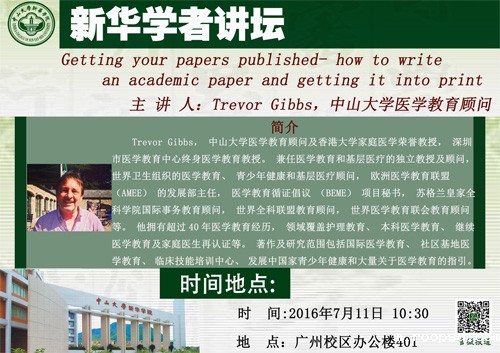 讲座主题:Getting your papers published - how to write an academic paper and getting it into print