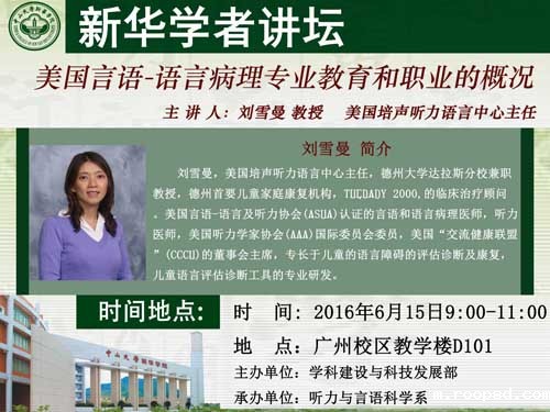 讲座题目:美国言语-语言病理专业教育和职业的概况