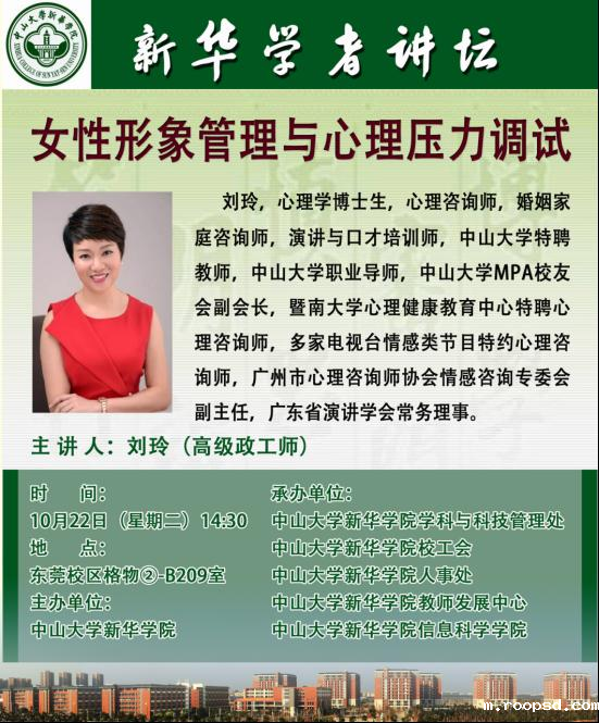 刘玲,心理学博士生,心理咨询师,婚姻家庭咨询师,演讲与口才培训师,中山大学特聘教师,中山大学职业导师,中山大学MPA校友会副会长,暨南大学心理健康教育中心特聘心理咨询师,多家电视台情感类节目特约心理咨询师,广州市心理咨询师协会情感咨询专委会副主任,广东省演讲学会常务理事。
