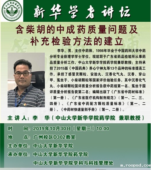 讲座主题:含柴胡的中成药质量问题及补充检验方法的建立
