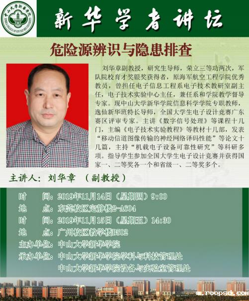 刘华章副教授,研究生导师,荣立三等功两次,军队院校育才奖银奖获得者,原海军航空工程学院优秀教员,曾担任电子信息工程系电子技术教研室副主任,电子技术实验中心主任,兼任系和学院教学督导专家。现中山大学bv伟德体育app官网学院信息科学学院专职教师,中山大学bv伟德体育app官网学院逸仙bv伟德体育app官网班特长导师,全国大学生电子设计竞赛广东赛区评审专家。