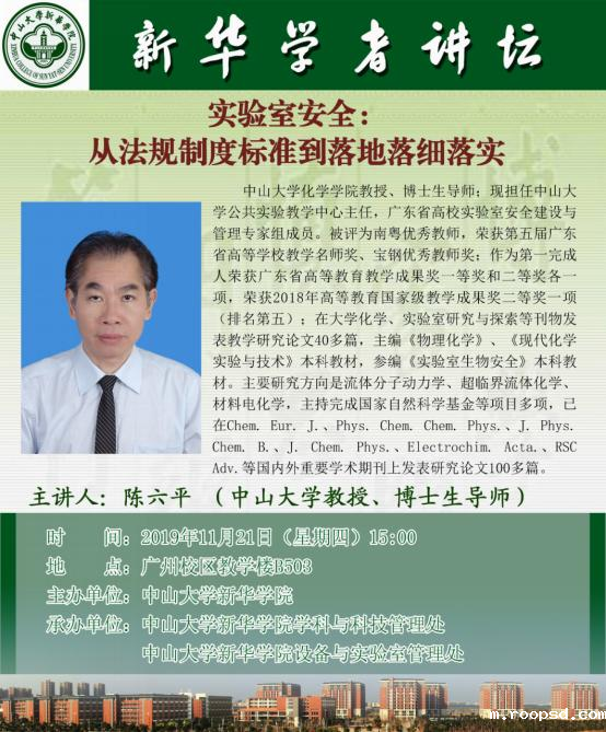 讲座主题:实验室安全:从法规制度标准到落细落地落实