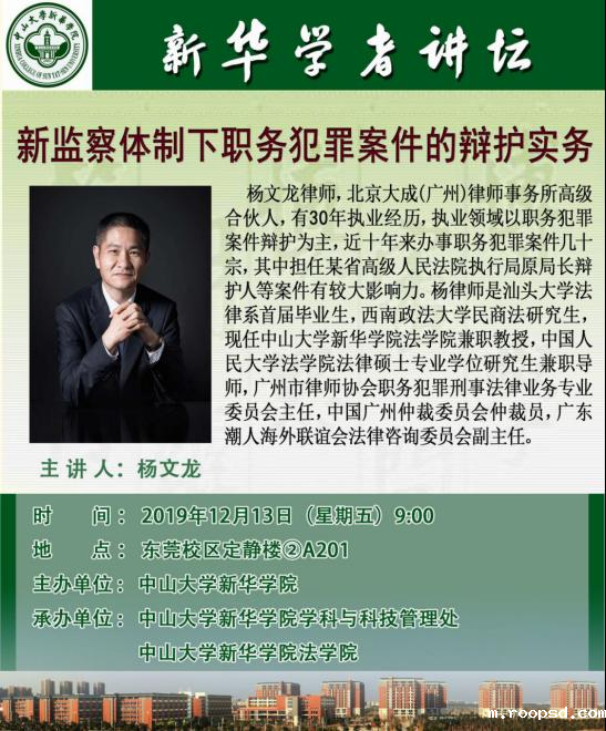 讲座题目:新监察体制下职务犯罪案件的辩护实务