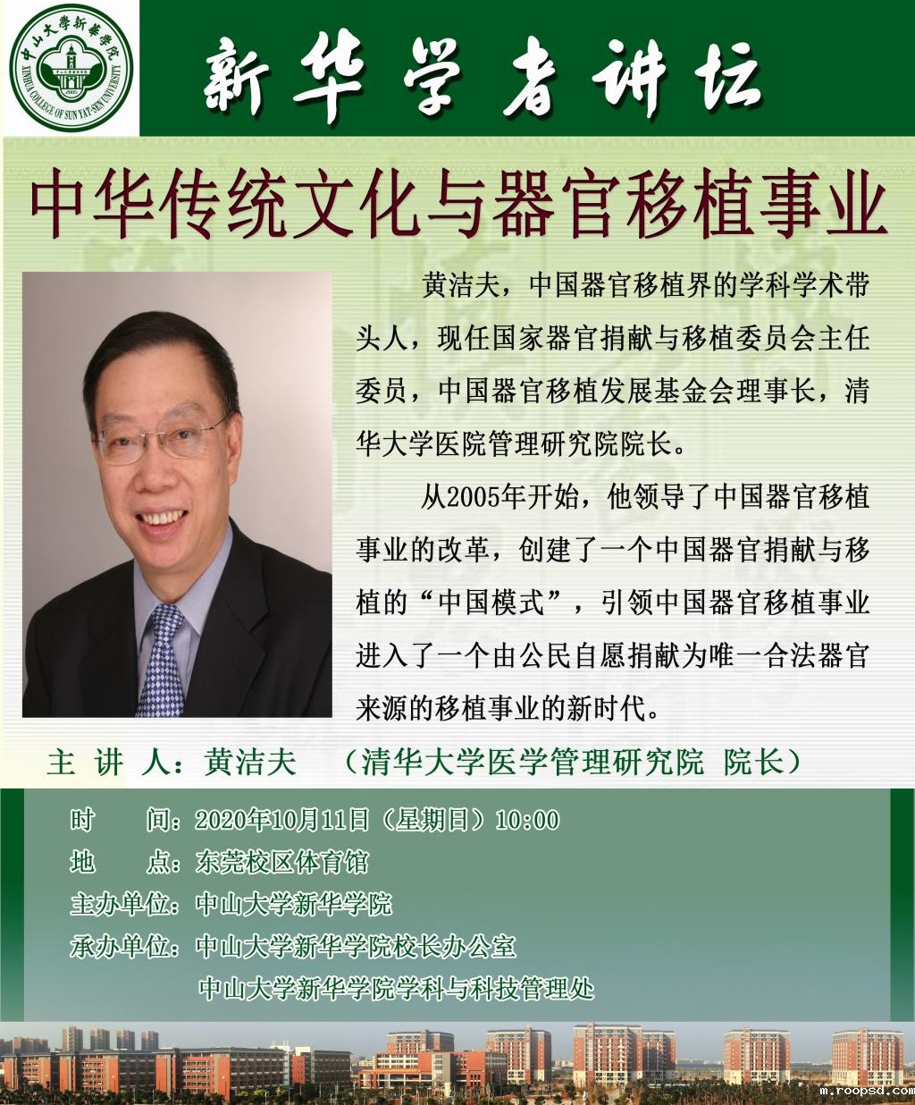 为弘扬中华传统文化,扩展师生关于器官移植事业的知识面。我校邀请中国器官移植界的学科学术带头人黄洁夫教授为师生开展一场以《中华传统文化与器官移植事业》为主题的讲座。