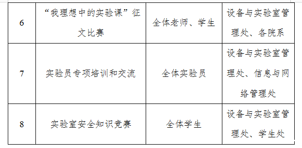 “实验室安全活动周”是我校提升实验室安全管理水平、加强实验室安全宣传的重要活动之一。各院系、教学研究部是参加实验室安全周活动的主要单位,要高度重视,充分发挥本单位在实验室安全管理工作的主观能动性,积极组织师生参与活动,以增强师生防范意识、营造安全健康环境为根本,全方位、多形式将教育宣传工作做到实处。