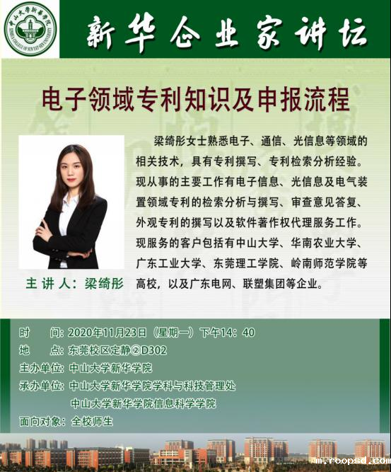 [企业家讲坛]梁绮彤:电子领域专利知识及申报流程