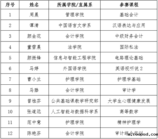 伟德app入口第十二届中青年教师授课竞赛校级决赛名单