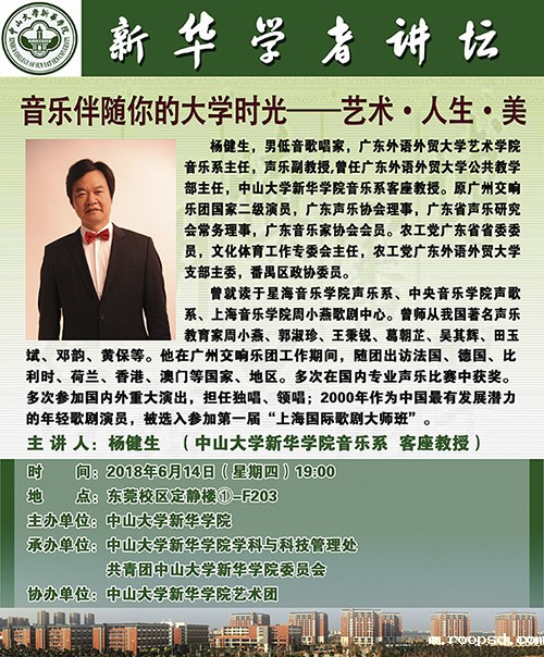 主 讲 人:杨健生 中山大学bv伟德体育app官网学院音乐系 客座教授