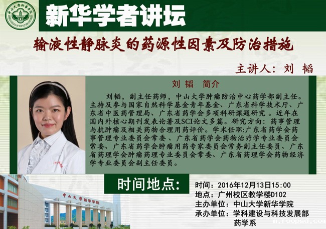 讲座题目:输液性静脉炎的药源性因素及防治措施