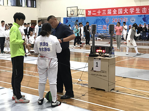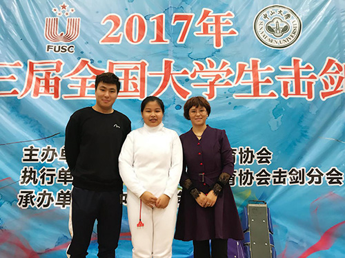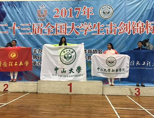11月7日,第二十三届全国大学生击剑锦标赛于中山大学南校区正式开幕。我校体育部名誉主任樊莲香教授、许振刚领队和孙传方教练带队出席了本次开幕式。在11月9日举行的击剑锦标赛个人赛中,我校李逸佳同学在女子甲组重剑比赛中先后战胜清华大学、中国海洋大学、澳门城市大学等众多参赛高校,勇夺全国第三的好成绩。同时我校击剑队也得到大学生体育协会、大学生体育协会击剑分会、广东省体育局以及全国各高校的一致认可,荣获道德风尚奖。