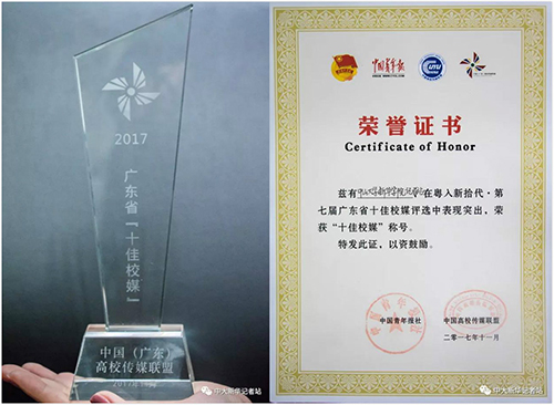 学院记者站同中大青年、华南师大新闻社、华工百步梯、广大学生记者团等10家优秀高校学生媒体一举斩获第七届广东省“十佳校媒”殊荣。