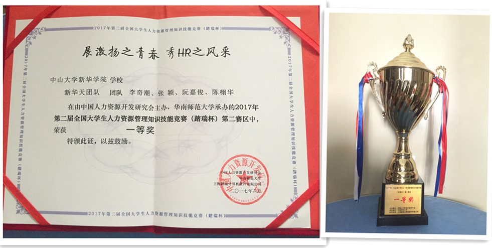 6月10日至11日,第二届全国大学生人力资源管理知识技能竞赛(踏瑞杯)第二赛区的比赛在华南师范大学广州大学城校区举行,我校公共管理学系人力资源管理专业2015级李奇潮、张颖、阮嘉俊、陈栩华四位同学在区展玲、杨双玲两位老师的带领下参加了此次比赛并荣获一等奖,成功晋级全国总决赛。