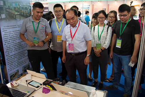 在比赛过程中,我校领导给予高度重视。校内赛决赛时蓝永金副校长、副书记和李中生副校长等莅临现场对参加校内赛决赛的作品进行指导点评。省赛决赛时蓝永金副校长、副书记带队,与入围团队指导老师一同前往作品展示现场。此外,为进一步提升我校参赛水平,培育后备队伍,我校还组成了观摩团到现场进行观摩学习。