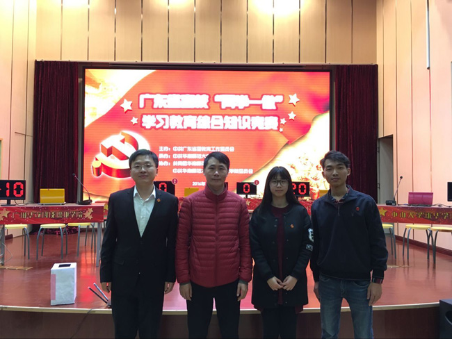 12月15日,由中共广东省委教育工作委员会主办的广东省高校“两学一做”学习教育综合知识竞赛在华南师范大学举行。我校派出领队林秋贵校长助理,教师党员史航、学生党员林裕详、黄铧英参加现场决赛,与全省18所本专科高校师生代表同台竞赛。经过激烈角逐,我校代表队荣获广东省高校“两学一做”学习教育综合知识竞赛三等奖。