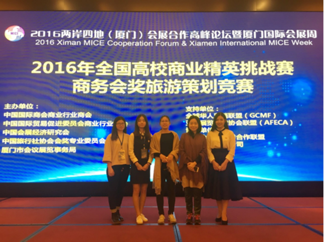 11月7日至9日,由中国国际贸易促进委员会商业行业分会、中国国际商会商业行业商会、中国会展经济研究会、中国旅行社协会会奖专业委员会、厦门市会议展览事务局共同主办的2016年全国高校商业精英挑战赛商务会奖旅游策划竞赛总决赛(以下简称“总决赛”)在福建省厦门市举行。我院经贸系经济学会展方向的梁碧娴、王巧妹、杨瑾三位同学所组成的中山大学