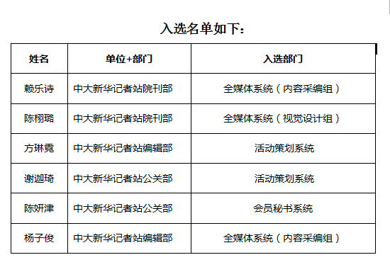 记者站赖乐诗等6名学生记者再次成功入选联盟部委。