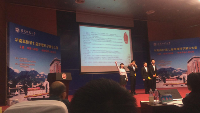11月21日,由中国地理学会和中山大学地理科学与规划学院联合主办,福建师范大学地理科学学院、福建省地理学会承办的华南高校第七届地理科学展示大赛总决赛在福建师范大学旗山校区举行。我院旅行者1号团队作为唯一一所独立学院代表队,当日与来自香港中文大学、台北市立大学、台湾逢甲大学、中山大学、福建师范大学、湖南师范大学、华南师范大学、广州大学等海峡两岸暨香港、澳门18所高校的18支队伍同台竞技。我院代表队经过一番激烈的角逐后,喜获“华南高校第七届地理科学展示大赛”优秀奖。