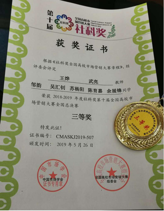 我校师生团队获“2018-2019年度社科奖第十届全国高校市场营销大赛全国总决赛”三等奖