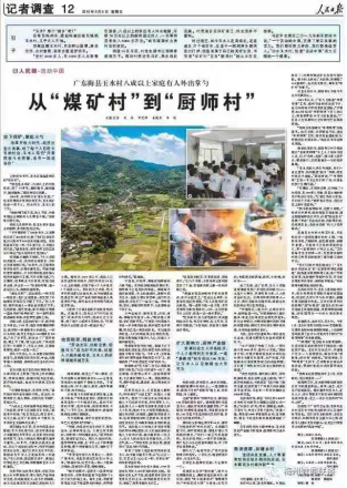 2019年9月6日的人民日报第12版记者调查专版,整版刊登广东梅县区城东镇玉水村从“煤矿村”走向“厨师村”的新闻报道。其中版面主图“航拍玉水村”由我校芒果皮一“厨”好戏社会实践队队员、来自2018级英语专业的石雨晨所摄;主图“玉水村厨师烹制的姜蓉鸡”和“玉水村一名厨师在做菜”由实践队队员、2018级电子商务专业的唐汉丞所摄。