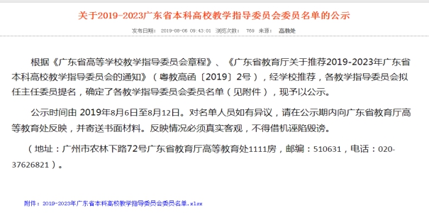 据悉,根据《广东省高等学校教学指导委员会章程》《广东省教育厅关于推荐2019-2023年广东省本科高校教学指导委员会的通知》(粤教高函〔2019〕2号)文件精神,经学校推荐,各教学指导委员会拟任主任委员提名,并确定各教学指导委员会委员名单。