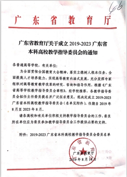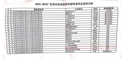 2019年8月,广东省教育厅网站公示2019-2023广东省本科高校教学指导委员会委员名单,中山大学