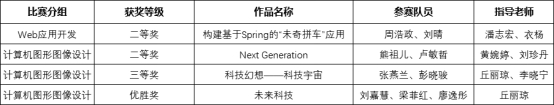学院信息科学学院的4支队伍共获得二等奖2项、三等奖1项、优秀奖1项,潘志宏、黄婉婷和丘丽琼三位指导老师均获“优秀指导老师奖”,我校获得“优秀组织奖”。