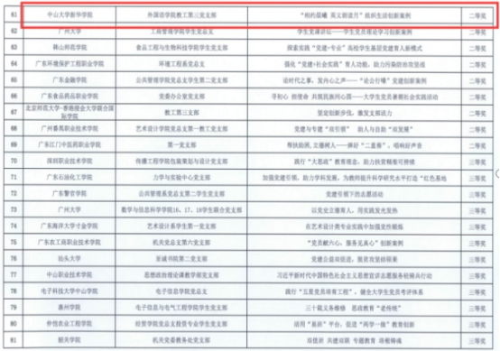 据悉,中共广东省委教育工委根据《中共广东省委教育工委关于开展全省教育系统基层党组织党建工作创新案例征集评选活动的通知》,经组织专家评审,共评选出“学校党委党建工作创新案例”47个,“基层党组织书记工作案例”63个,“基层党支部组织生活创新案例”129个。