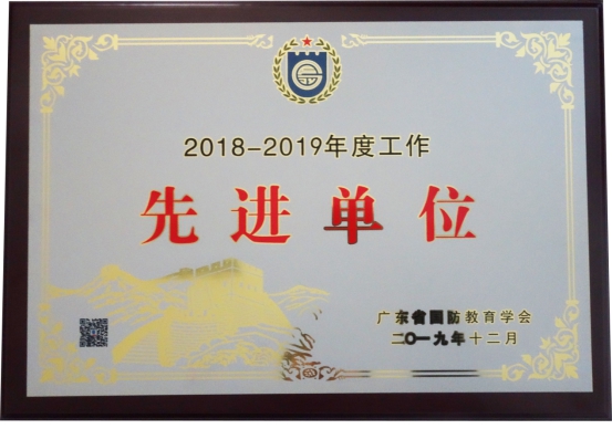 我校被评为广东省国防教育学会2018-2019年度工作先进单位