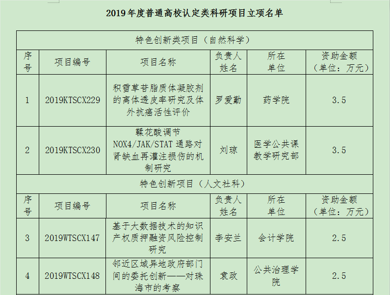 为深入实施创新驱动发展战略,落实《广东省教育厅广东省科学技术厅关于印发科教融合协同推进高校科技创新能力提升工作计划的通知》(粤教科函〔2019〕57号),2019年省教育厅结合“创新强校工程”的组织开展了科研平台和科研项目的遴选认定工作。根据《广东省教育厅关于公布2019年度普通高校重点科研平台和项目立项名单的通知》(粤教科函〔2020〕1号)和《广东省教育厅关于公布2019年度普通高校认定类科研项目立项名单的通知》,学校今年一批新增项目再次顺利获得立项。