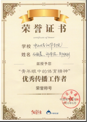 记者站荣获“青年眼中的体育精神”短视频征集大赛“优秀校园团体”荣誉称号。
