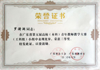 我校在广东省第五届高校(本科)青年教师教学大赛获奖情况