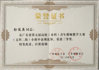 学院获广东省第五届高校(本科)青年教师教学大赛优秀组织奖