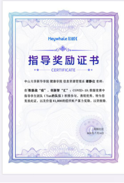 健康学院信息资源管理专业团队获大赛指导奖励证书