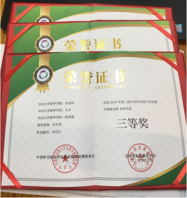 6月1日,由中青杯全国大学生数学建模竞赛组委会、吉林省科技教育学会主办的第三届中青杯全国大学生数学建模竞赛圆满结束。我校由凌通、陈桐灵、杨睿组建的参赛队伍荣获二等奖,由伍诺琪、王卓、欧悦强组建的参赛队伍荣获三等奖,由赵家浩、陈煜洲、姚银明组建的参赛队伍,由李菲洁、李丽容、吴锦杰组建的参赛队伍荣获优秀奖。