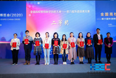 赖宁艺老师(左二)获得第六届外语微课大赛全国总决赛二等奖