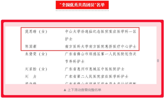 学院护理学院2013级、2014级护理学专业校友莫思晴和陈国豪被评为“全国优秀共青团员”。这两位校友在新冠肺炎疫情发生期间,曾作为广东省援鄂一线医务工作人员,在武汉疫情最为严重的时候,奔赴前线,舍生忘死,救死扶伤,充分彰显了时代青年的责任与担当。