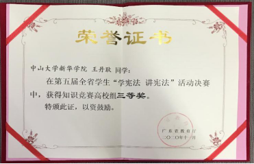 法学院学子王丹耿获广东省学生“学宪法 讲宪法”活动决赛知识竞赛高校组三等奖